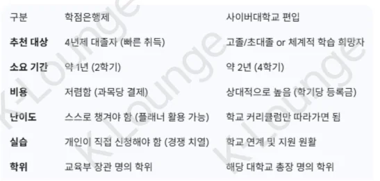 한국어 교원의 꿈, 학점은행제 vs 사이버대 편입 비교
