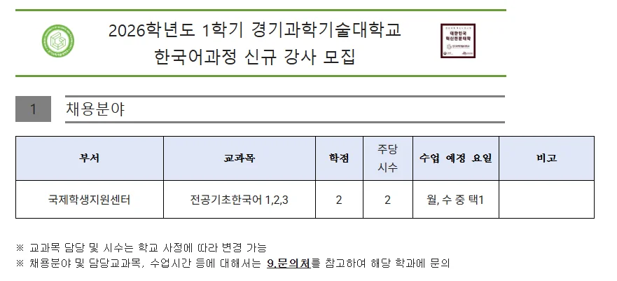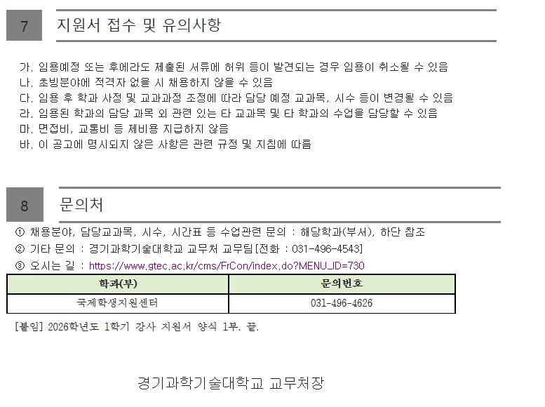 2026학년도 1학기 강사 지원서 양식(경기과학기술대학교).hwp