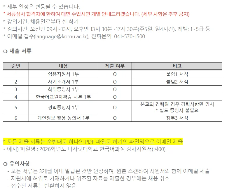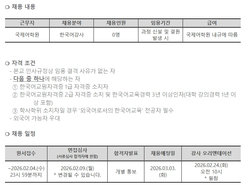 [충남/천안]2026년도 나사렛대학교 한국어과정 강사 채용